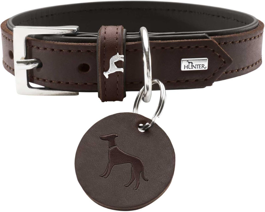 HUNTER LARVIK Hundehalsband, Leder, schlicht, elegant, komfortabel, 60 (M-L), dunkelbraun/schwarz du