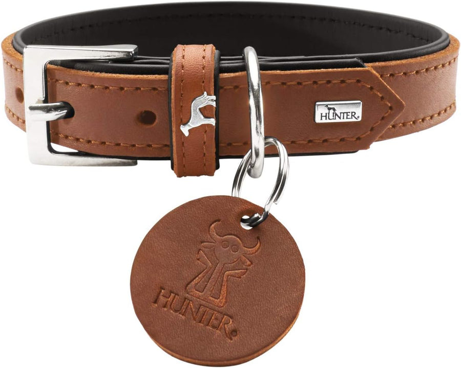 HUNTER LARVIK Hundehalsband, Leder, schlicht, elegant, komfortabel, 55 (M), cognac/schwarz cognac/sc