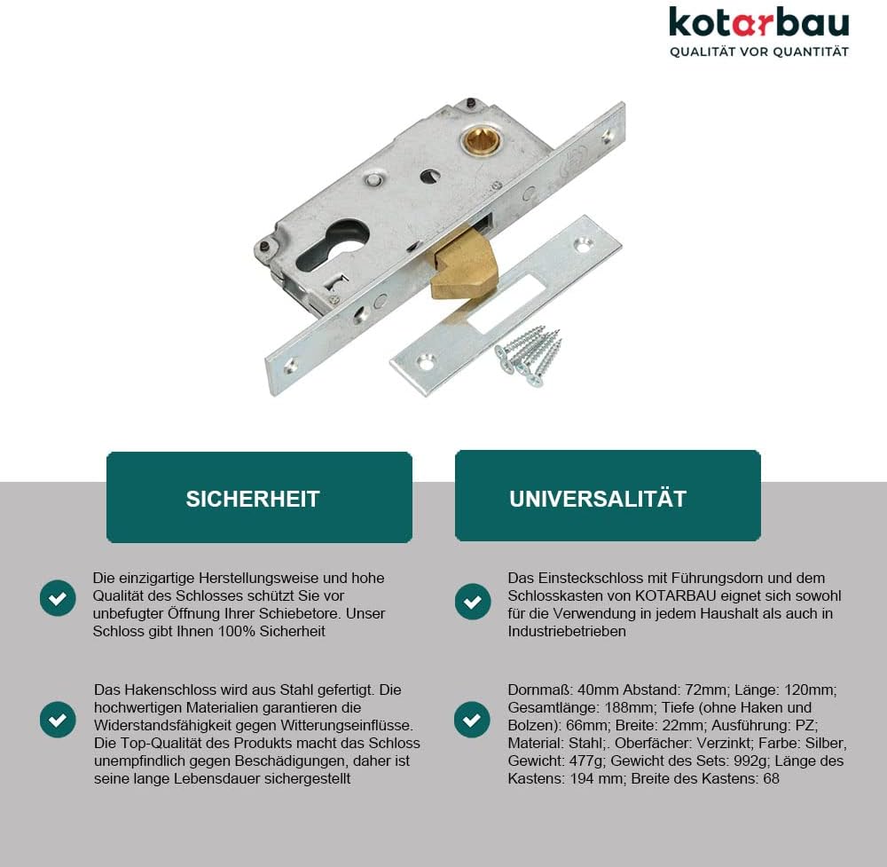 KOTARBAU® Hakenschloss Schiebetore Einsteckschloss 72/40 Schlosskasten Schiebetürschloss Hakenfallen