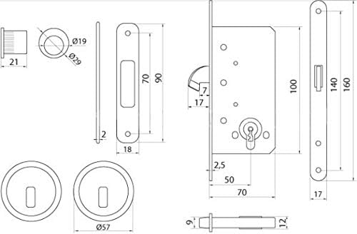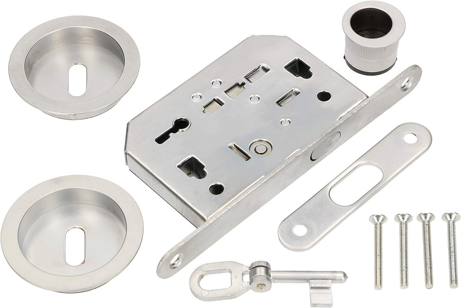 KOTARBAU® Hakenschloss Satz für Schiebetüren mit Schlüssel Rosetten mit Griffmulde, Silber verchromt