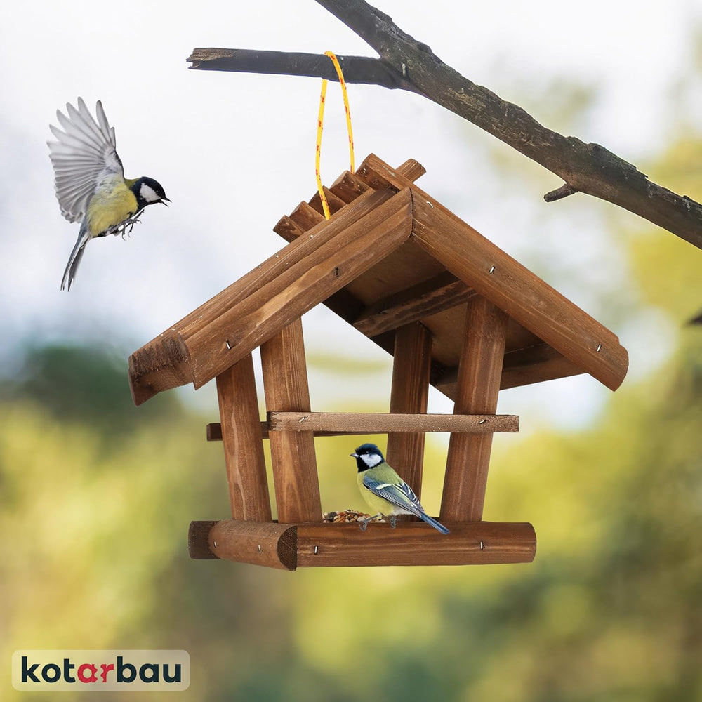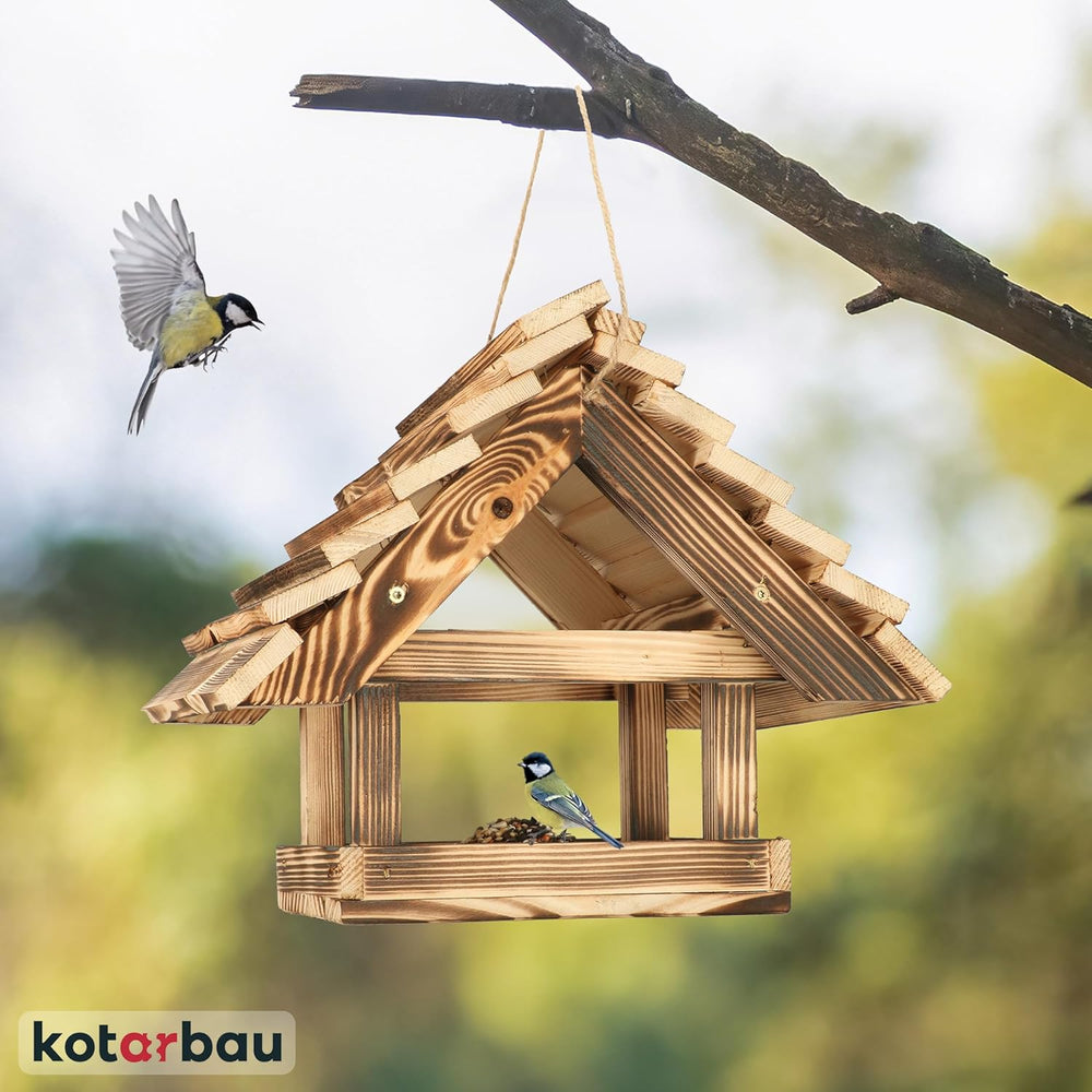 KOTARBAU® Holz-Vogelfutterhaus aus Gebranntem Holz zum Aufhängen + 0,5 kg Futter Gratis
