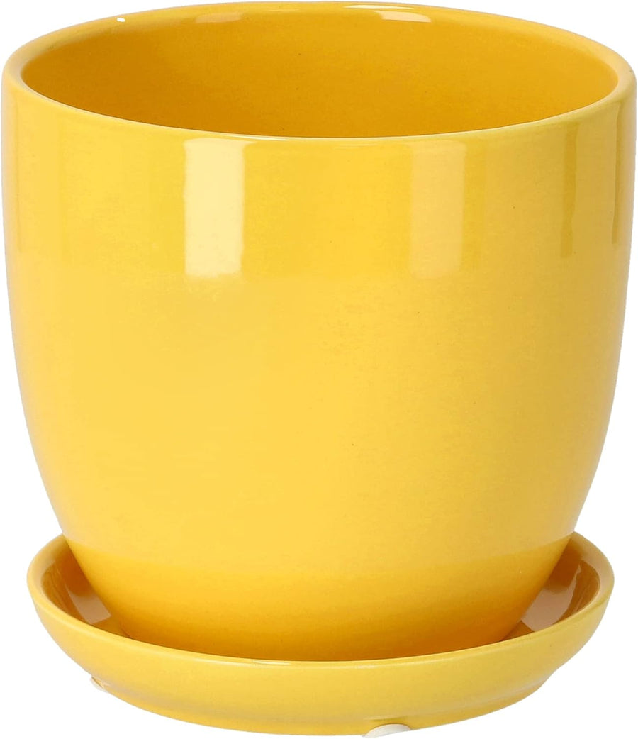 KOTARBAU® Keramik Blumentopf Übertopf für Blumen Pflanzen ⌀ 20 cm mit Tropfschale Gelb ⌀ 20 mm Gelb,