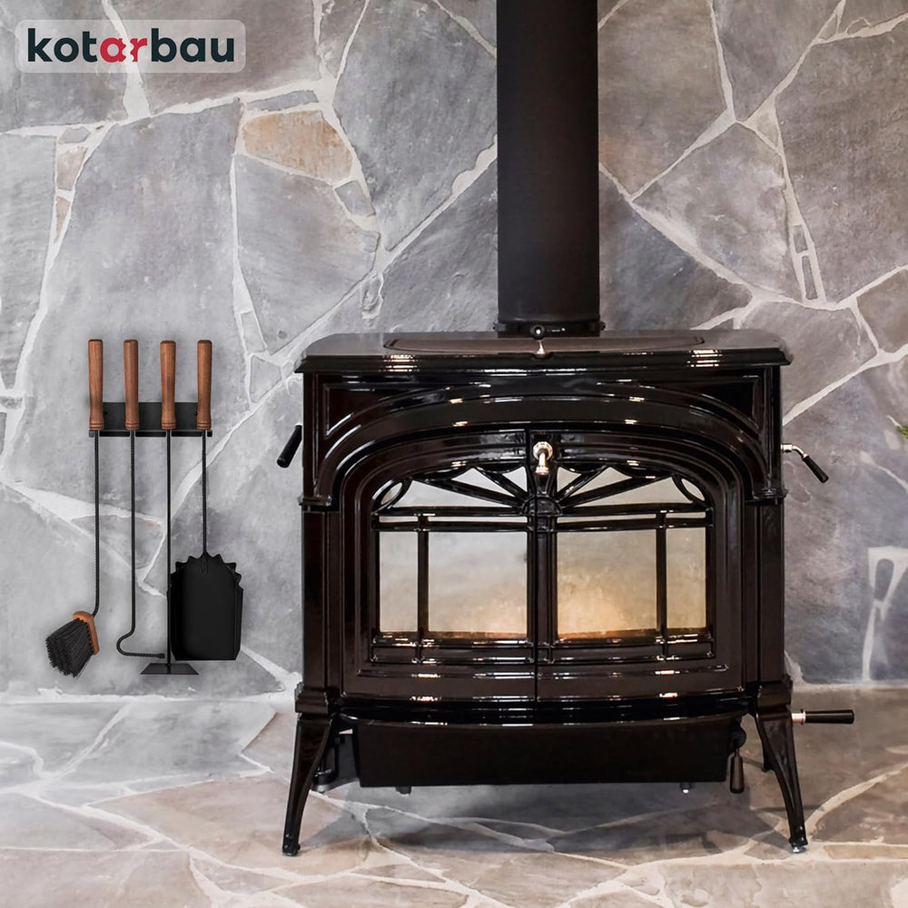 KOTARBAU® Kaminbesteck 4er Set mit Ascheeimer Schürhaken Besen Schaufel mit Holzgriff Kamingarnitur