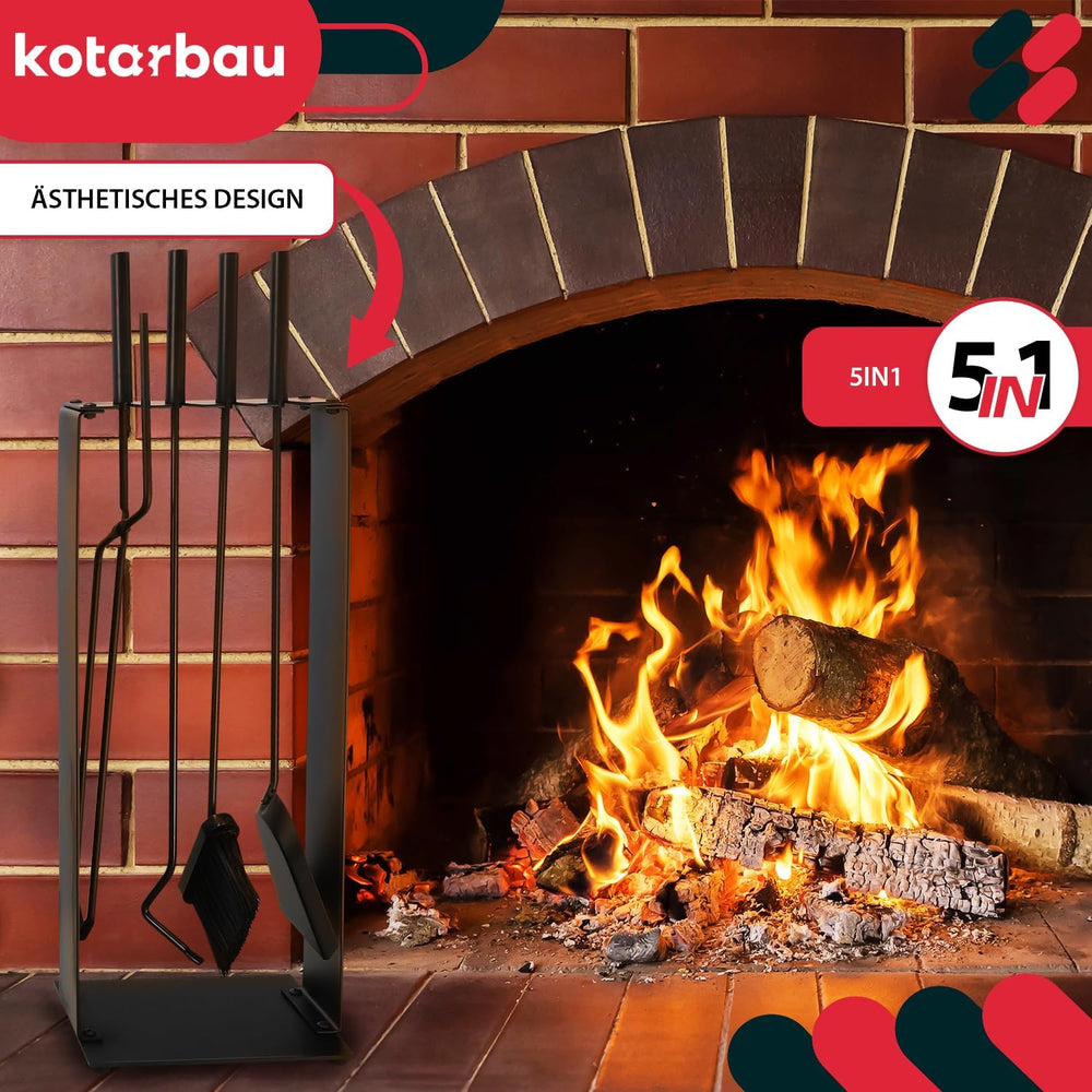 KOTARBAU® Kamingarnitur aus Stahl Schwarz mit Ständer 5tlg.