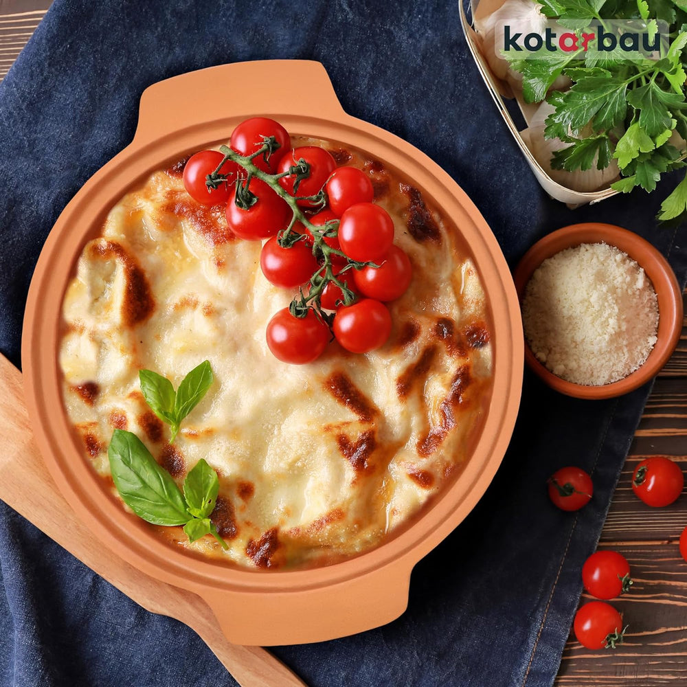 KOTARBAU® Keramik Bräter 4 L Römischer Topf Keramiktopf mit Deckel und Griffen Naturton Dampfgarer R