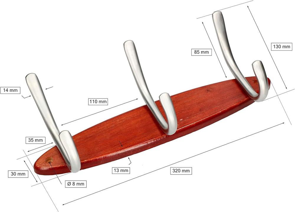 KOTARBAU® Holz-Garderobenhaken mit 3 Haken Kleiderhacken für Wandmontage Satin, 3 Haken