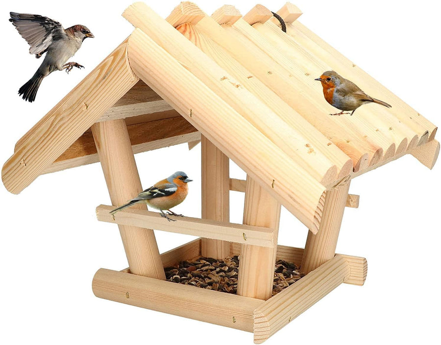 KOTARBAU® Holz Vogelfutterhaus Klein aus Natürlichem Holz Unlackiert zum Aufhängen + 0,5 kg Futter G
