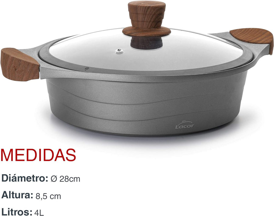 Lacor Bratentopf M/Glasdeckel, Aluminium, Grau, 27 x 23 x 12 cm, 27 x 23 x 12 cm