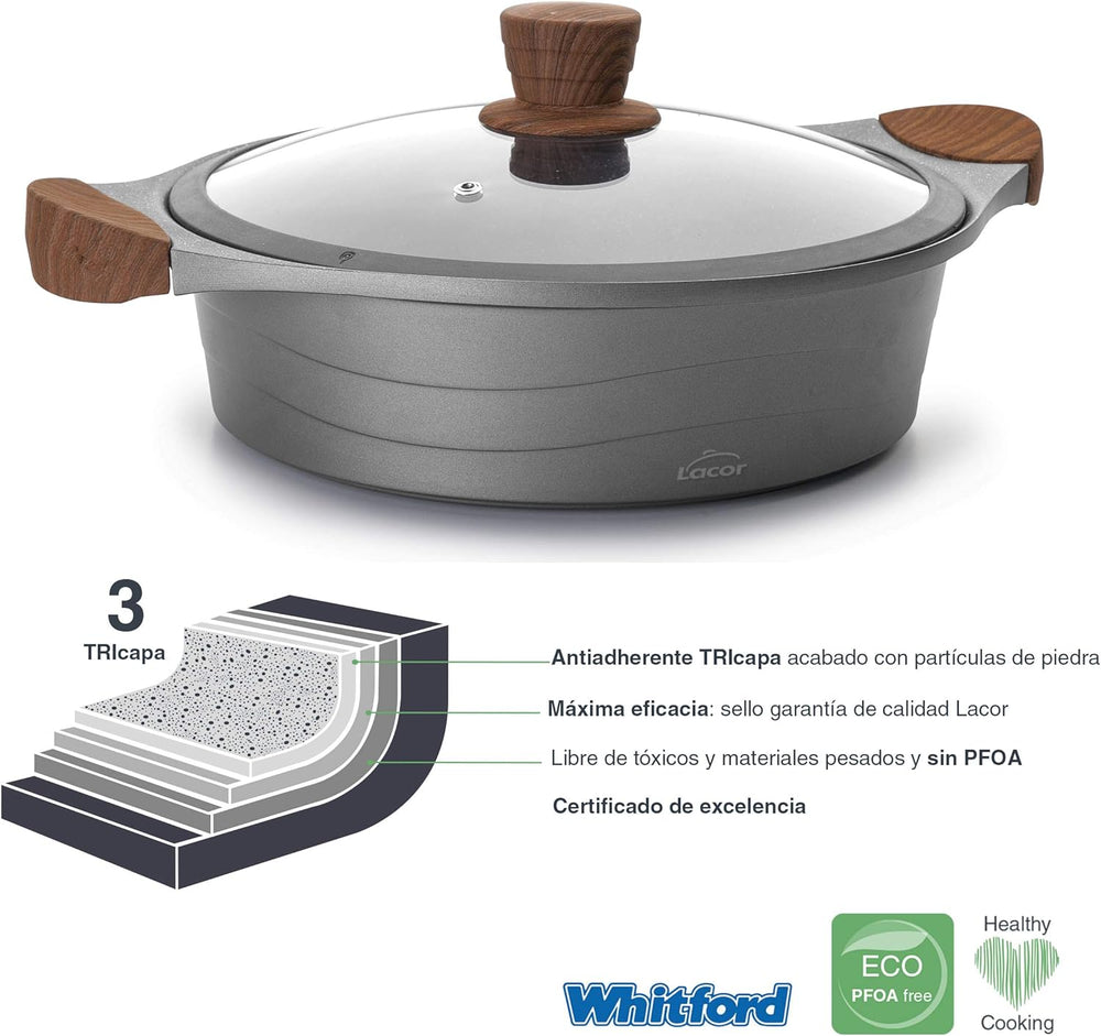 Lacor Cacerola 32 Kasserolle Vitrocor, Edelstahl, Silber One Size, 32 cm, One Size, 32 cm
