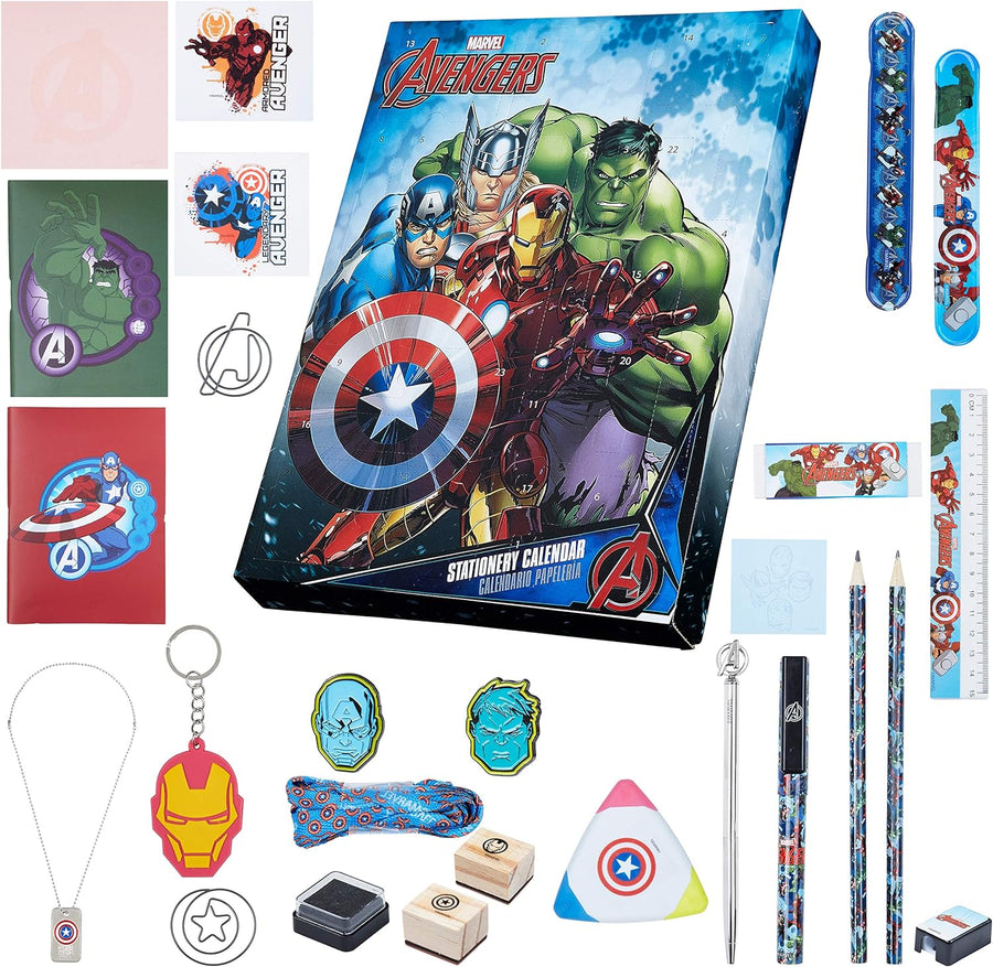 Marvel Adventskalender 2024 mit Schulsachen Schlüsselanhänger Spielzeug für Kinder (Avengers Mehrfar