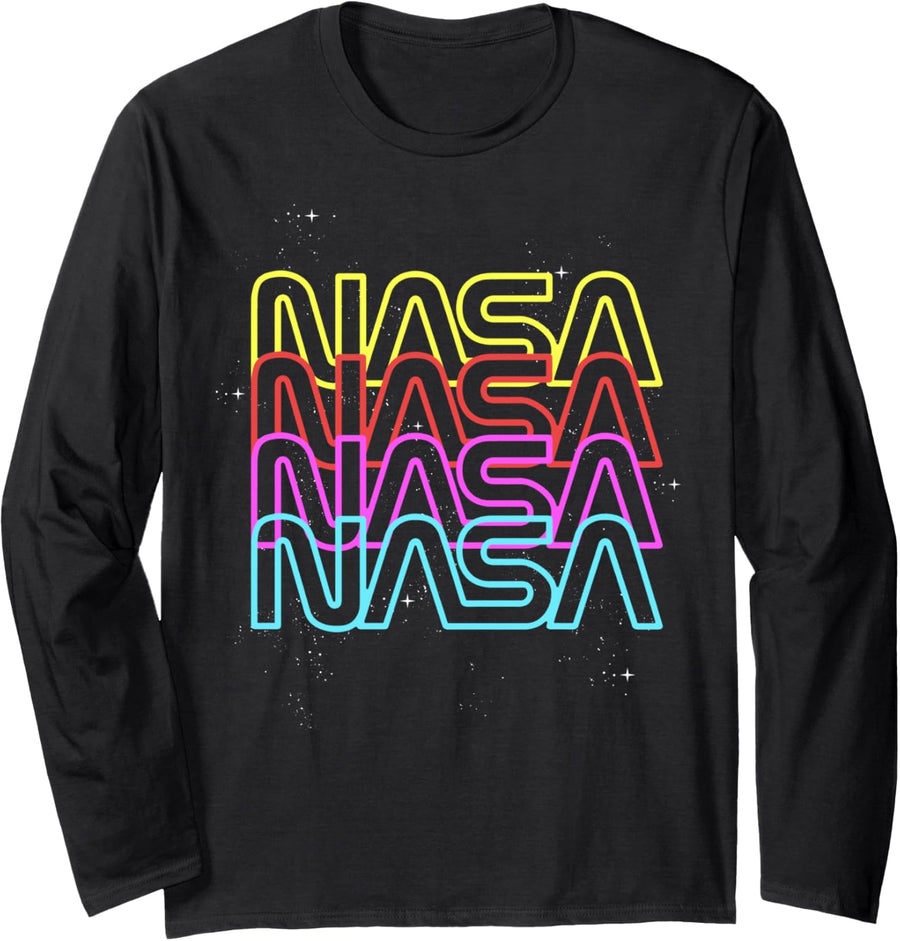 NASA Neon Logo Colorful Fade Text Langarmshirt