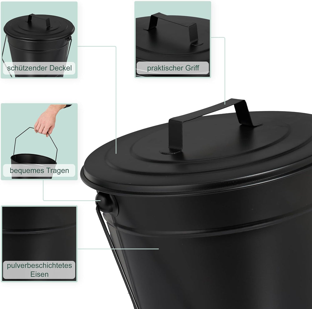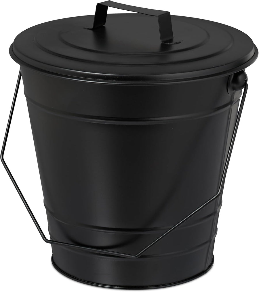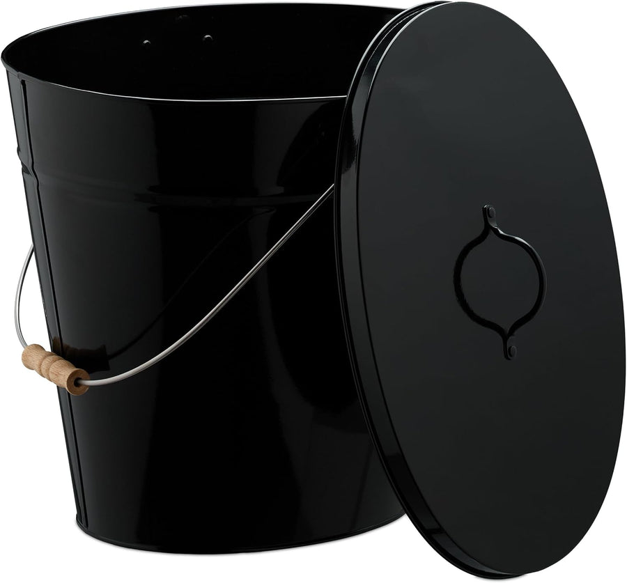 Relaxdays Ascheeimer mit Deckel, Henkel, 7 Liter, Eisen, Aschetonne für Kohle & Asche, Kamin, Ofen,