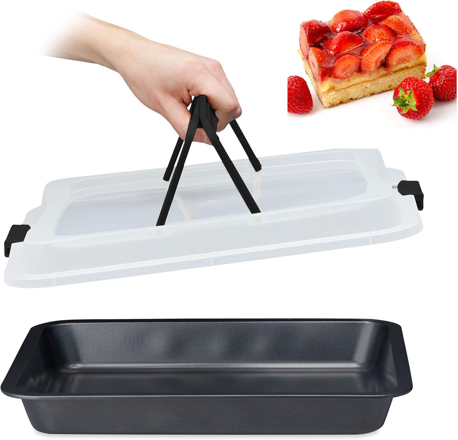 Relaxdays Backblech mit Deckel, 3in1 Kuchen Transportbox, BxT 40,5x32,5 cm, hoher Rand, Kuchenblech