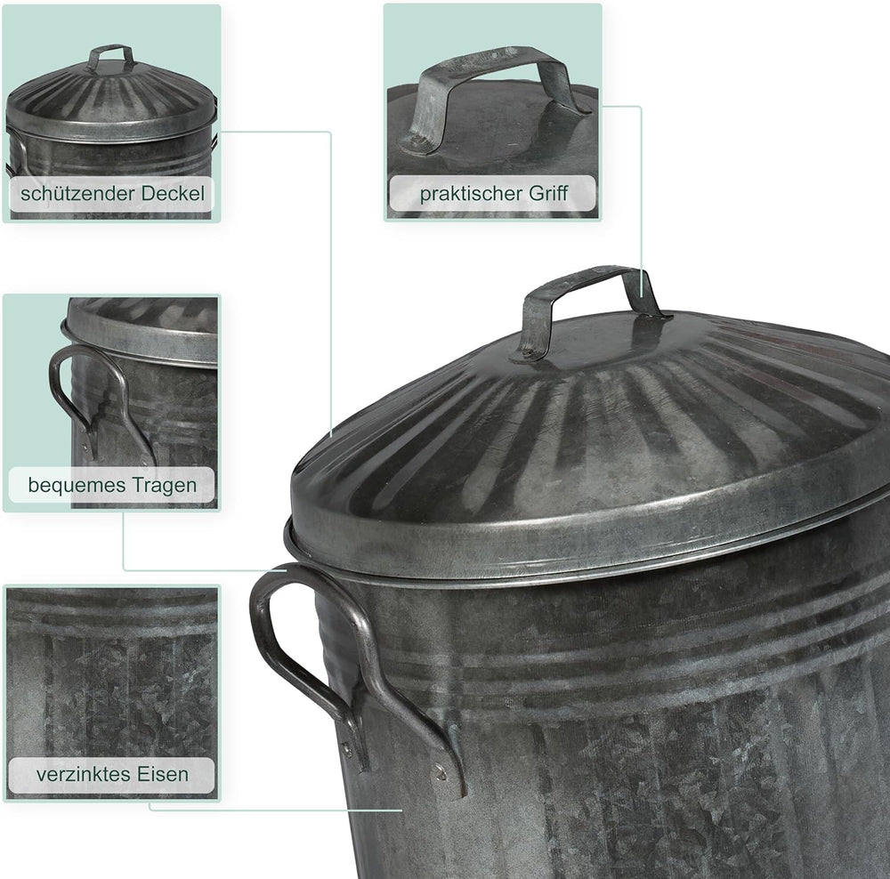 Relaxdays Ascheeimer mit Deckel, Griffen, 10 Liter, verzinktes Eisen, Aschetonne für Kohle & Asche,