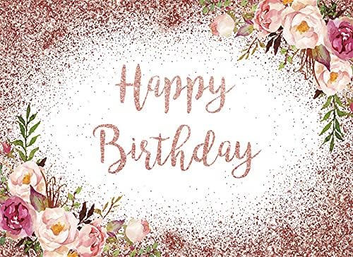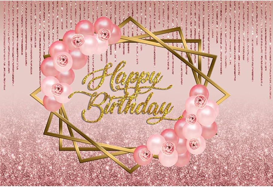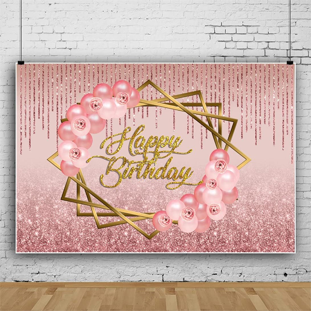 Renaiss 3x2m Rosa Happy Birthday Hintergrund Gold Rosa Glitzer Funkeln Rosa Ballon Blumen Fotografie