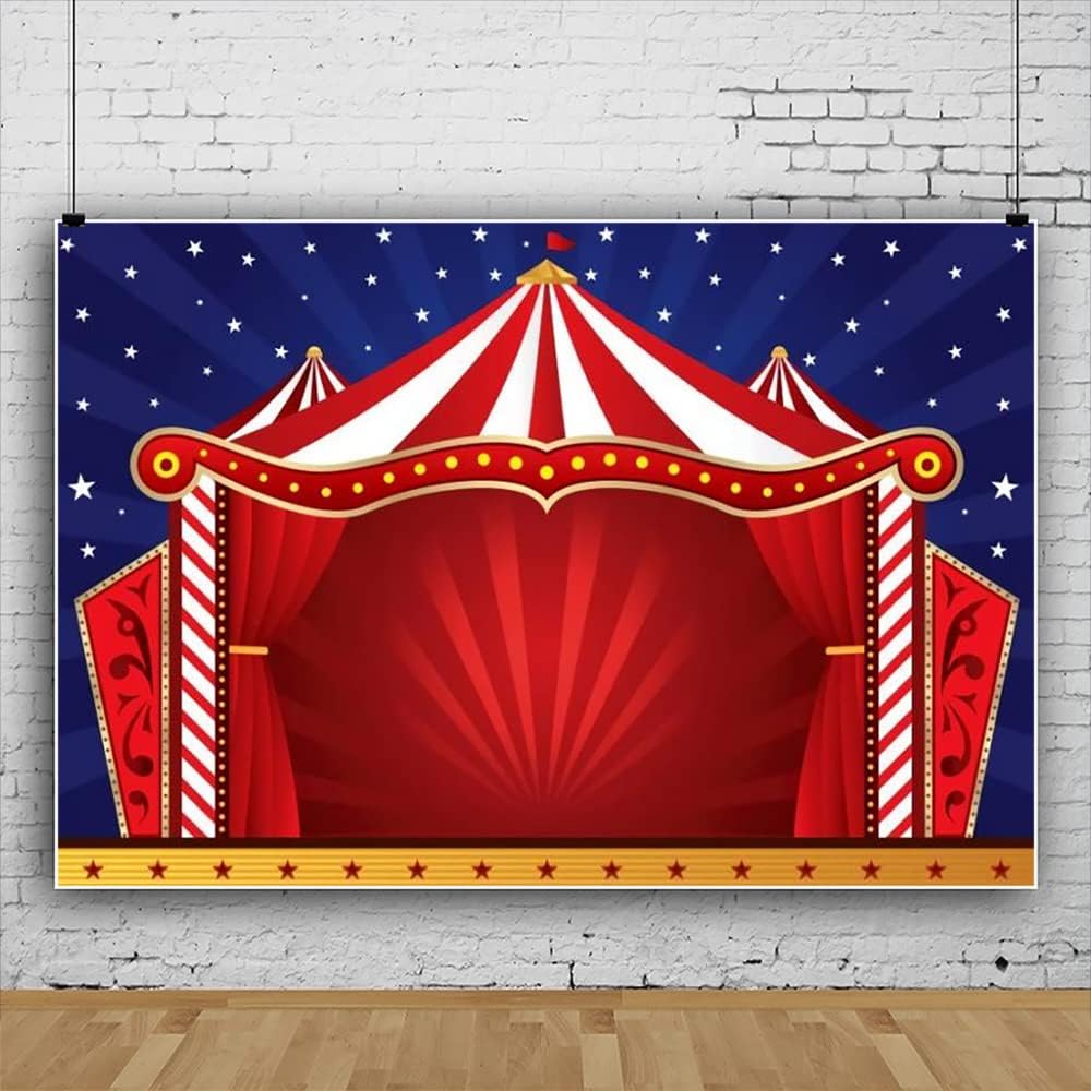 Renaiss 3x2m Zirkus Fotografie Hintergrund Karneval Rote Zelte Nachtsterne Hintergrund Karnevalsnach