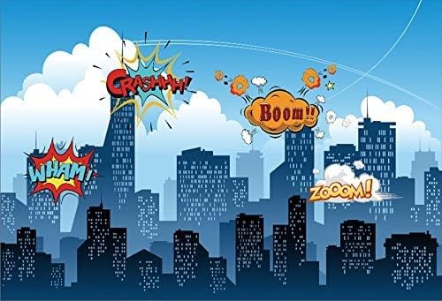 Renaiss 3x2m Superhelden Hintergrund Comic Stadtbild Hintergrund für Fotografie Baby Shower Boy Girl