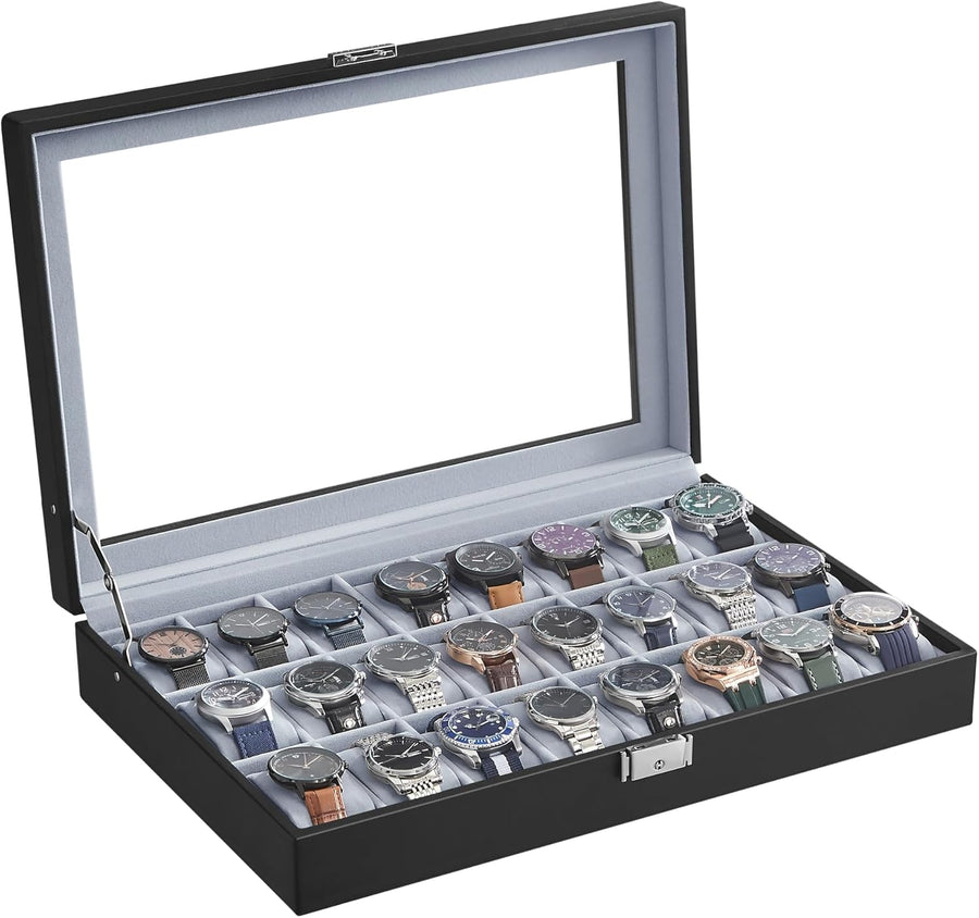 SONGMICS Uhrenbox, abschliessbare Uhrenschatulle, Aufbewahrung, Organizer für Uhren, mit 24 Fächern,
