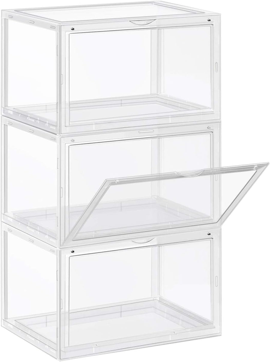 SONGMICS Schuhboxen, 3er Set, stapelbare Schuh-Organizer, Kunststoffboxen mit durchsichtiger Tür, Sc