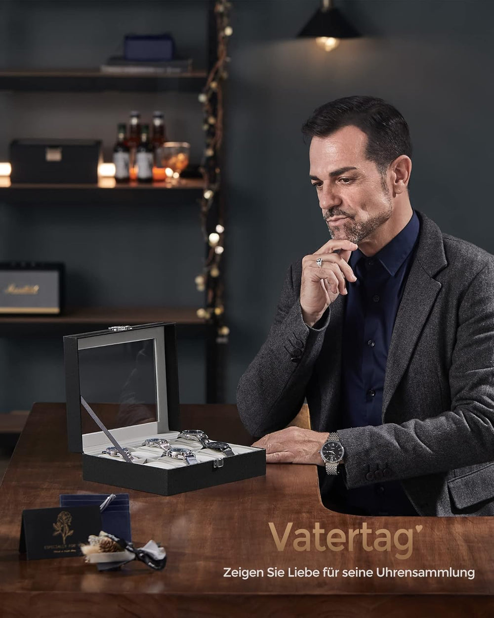 SONGMICS Uhrenbox mit 10 Fächern, Uhrenkasten mit Glasdeckel, Uhrenkoffer mit Herausnehmbaren Uhrenk