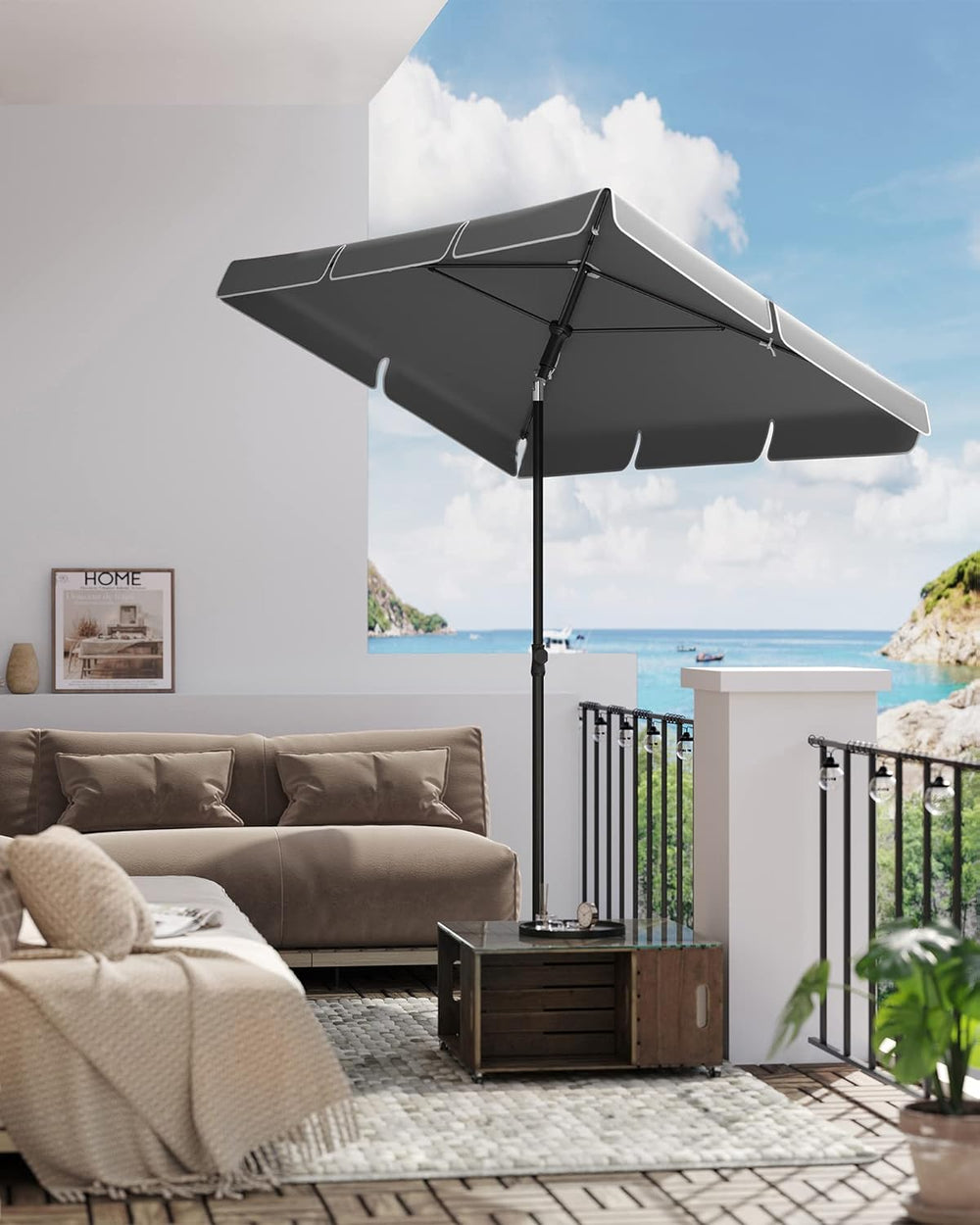 SONGMICS Sonnenschirm 180 x 125 cm, Sonnenschutz UPF 50+, neigbar um 30° in 2 Richtungen, höhenverst