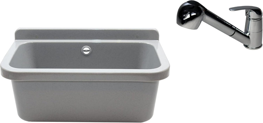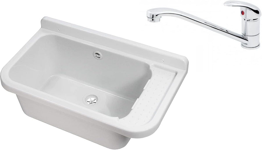 Waschbecken Ausgussbecken mit Armatur 55 cm x 34 cm x 21 cm Spülbecken Waschtrog mit Überlauf Waschb