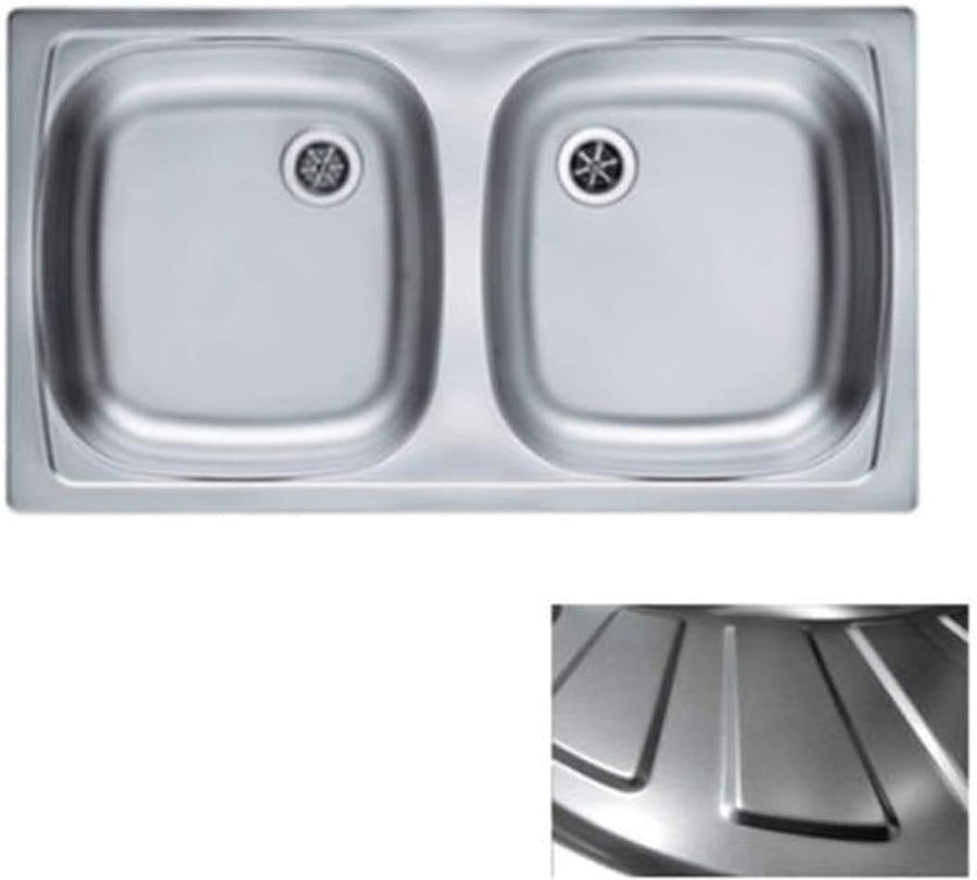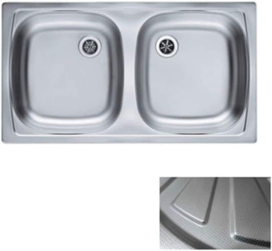 VBChome: Doppelbecken Einbauspüle mit Hahnloch 780 x 435 mm Camping Küchenspüle - Satinstruktur Alve