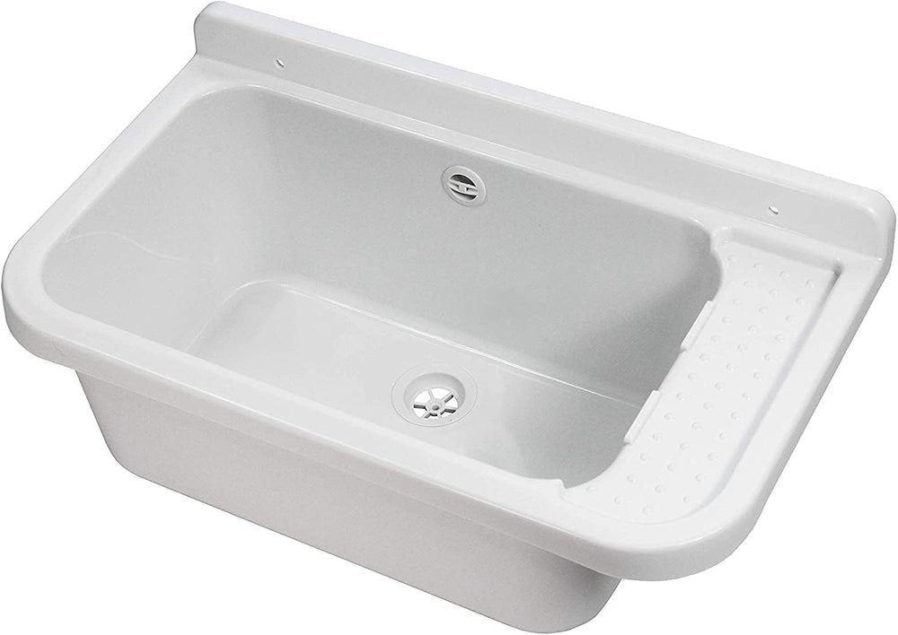 Waschbecken Ausgussbecken 59 cm x 34 cm x 21 cm Spülbecken Waschtrog mit Überlauf Waschbecken für Ge
