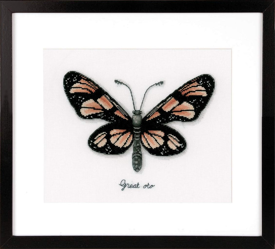 Vervaco Zählmusterpackung orangener Schmetterling Aida Kreuzstickpackung zum Auszählen, weiss, 27 x