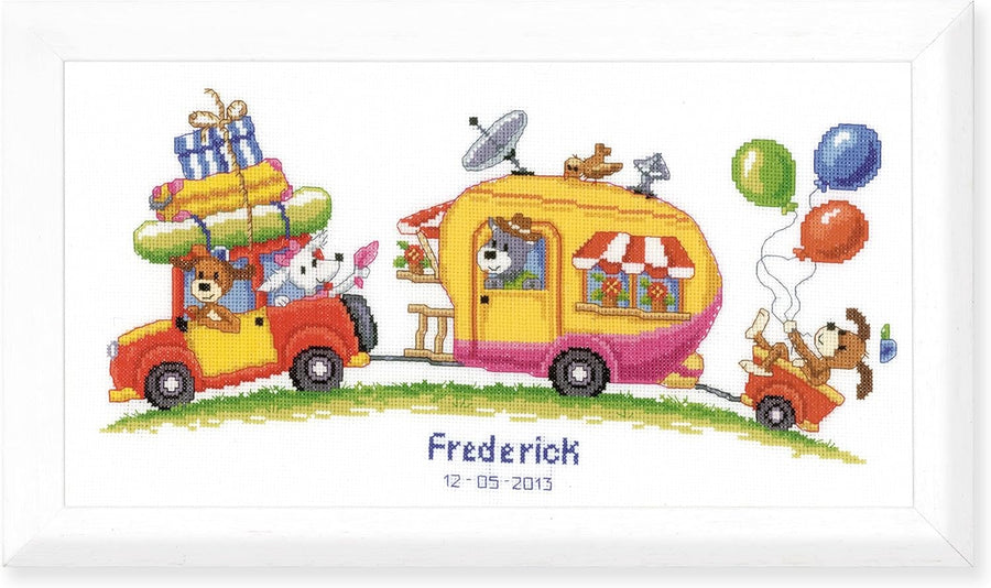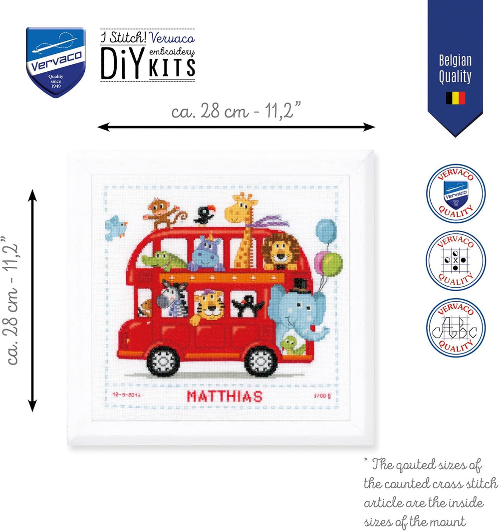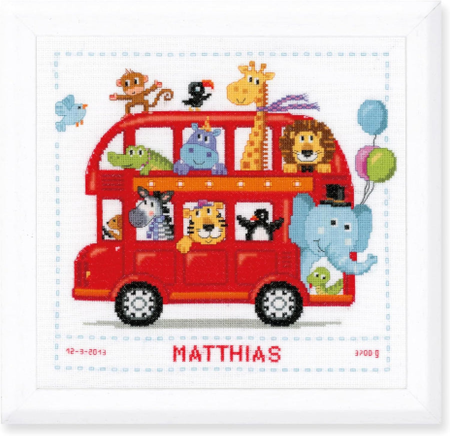 Vervaco Zählmuster Fröhliche Busfahrt Zählmusterpackung-Stickpackung im gezählten Kreuzstich, Baumwo