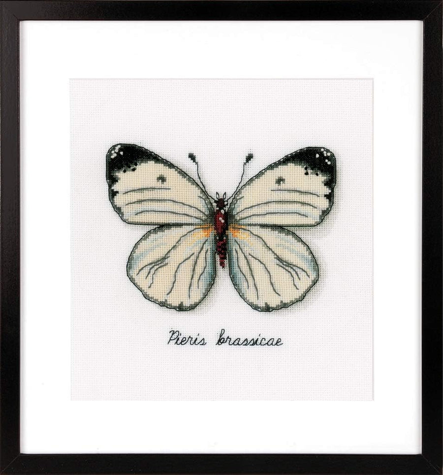 Vervaco Zählmusterpackung Aida Stickpackung Zählmuster weisser Schmetterling, Baumwolle, Mehrfarbig,