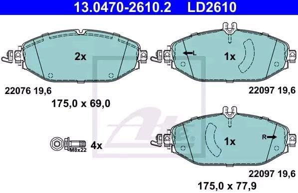 ATE 13.0460-7222.2 Bremsbelagsatz, Scheibenbremse