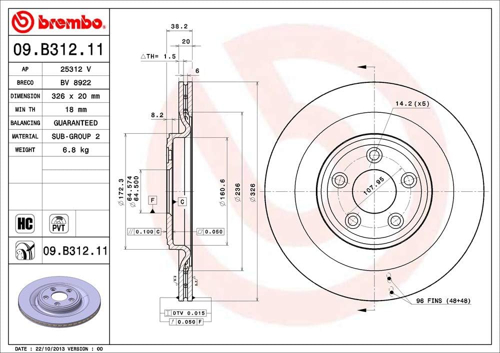 Brembo 09.B312.11 Hintere Bremsscheibe mit UV Lackierung, Anzahl 2