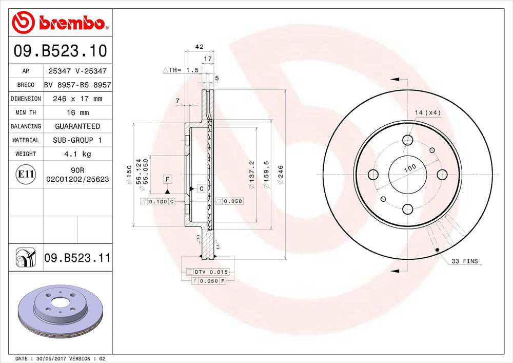 Brembo 09.B025.11 COATED DISC LINE Bremsscheibe - 1 Stück