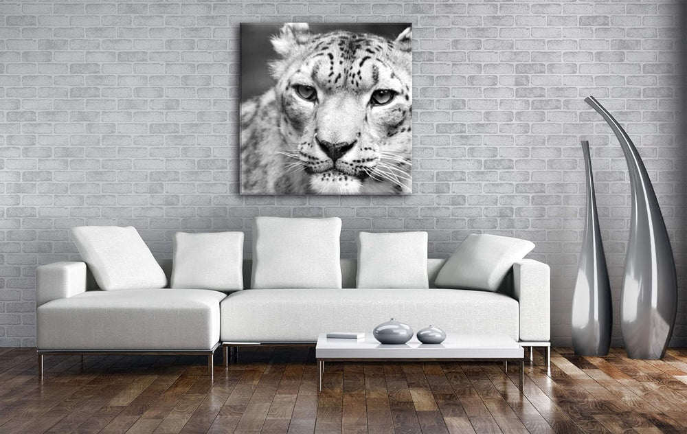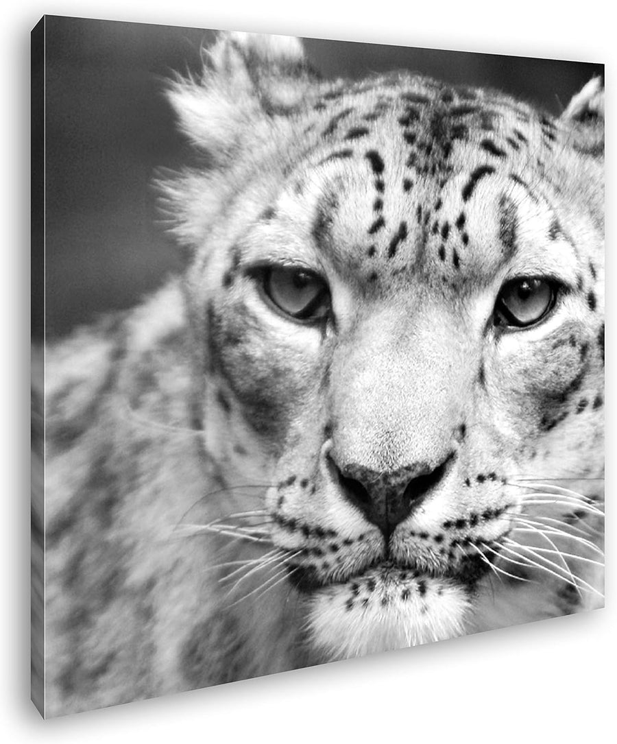 deyoli aufmerksamer Schneeleopard Format: 60x60 Effekt: Schwarz&Weiss als Leinwandbild, Motiv auf Ec