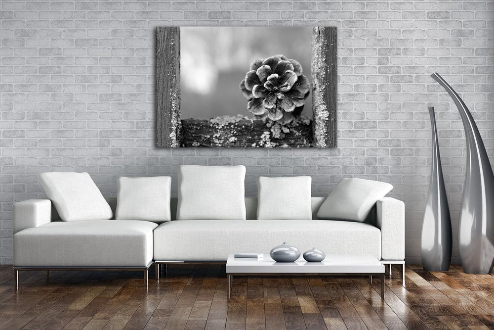 deyoli aufgegangener Kiefernzapfen Effekt: Schwarz/Weiss Format: 80x60 als Leinwandbild, Motiv ferti