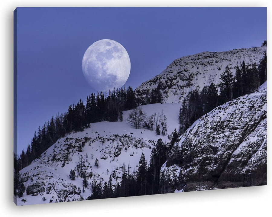 deyoli Aufgehender Mond über verschneiter Landschaft Format: 80x60 als Leinwandbild, Motiv fertig ge