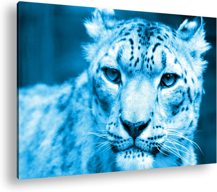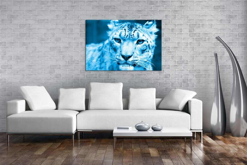 deyoli aufmerksamer Schneeleopard Format 80x60 Effekt: Monocrome Blau als Leinwandbild, Motiv fertig