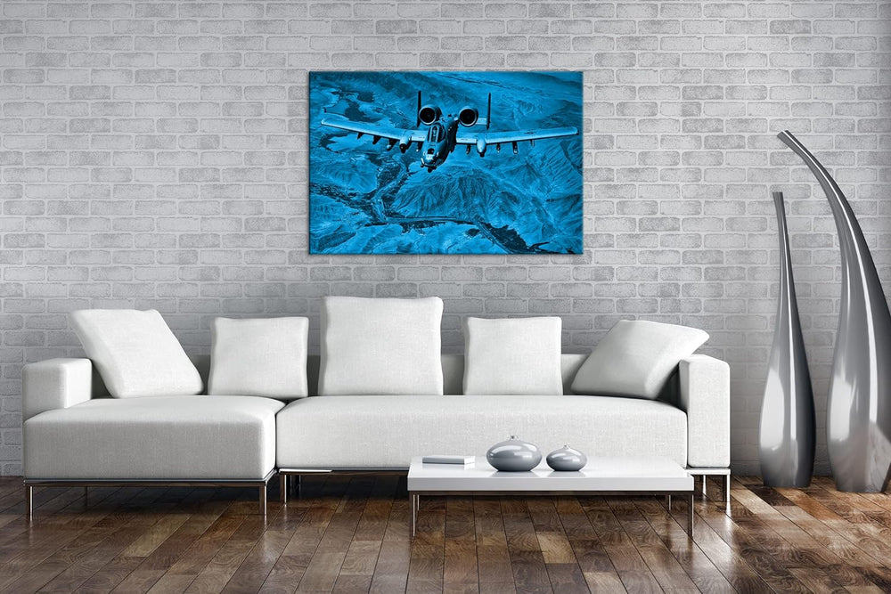 deyoli Atemberaubendes Militär Flugzeug Format: 80x60 Effekt: Monocrome Blau als Leinwandbild, Motiv