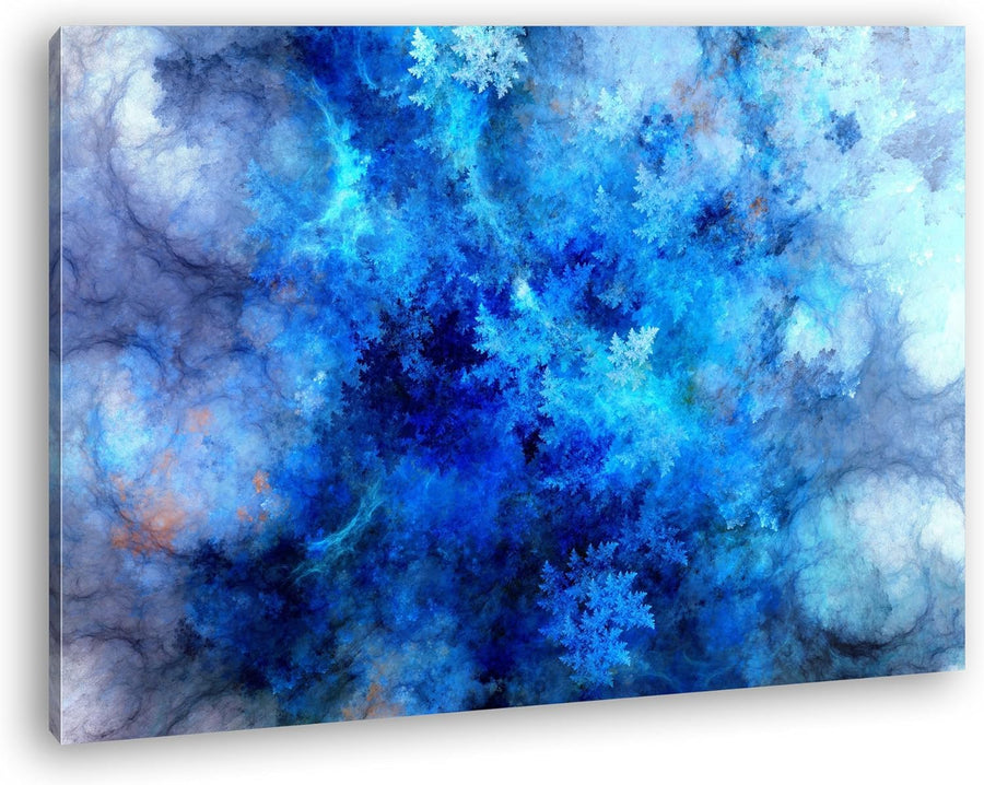 deyoli atemberaubendes Fraktal Muster in blau weiss Format: 80x60 als Leinwandbild, Motiv fertig ger