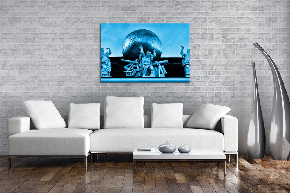 deyoli Atlas Skulptur in Vienna Österreich Format 80x60 Effekt: Monocrome Blau als Leinwandbild, Mot