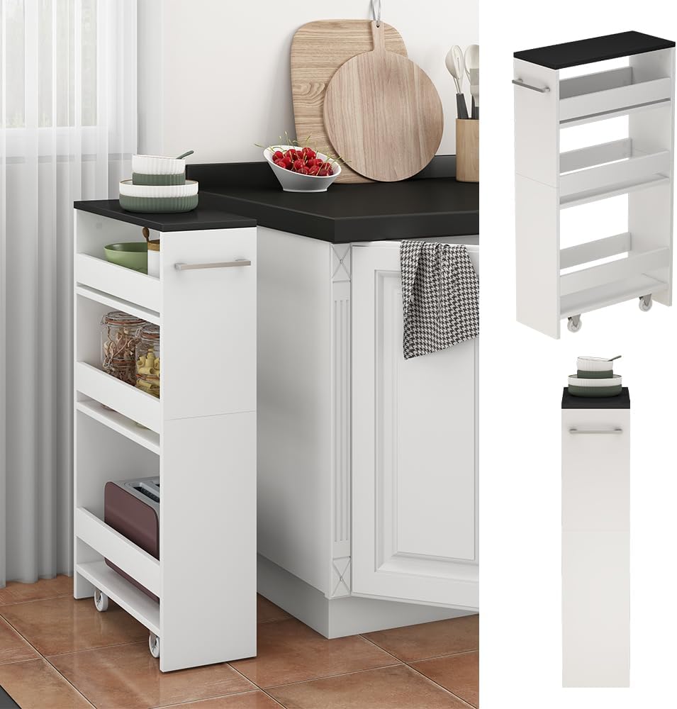 Vicco Rollregal Rivo, rollbare Küchen-Minibar, Weiss/Anthrazit, 30 x 84.8 cm Weiss/Anthrazit 30 cm,