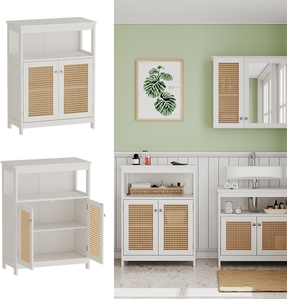 Vicco Midischrank Rosario, Weiss, 60 x 80 cm mit Türen und offenem Fach Sideboard, Sideboard