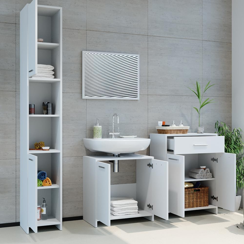 Vicco Midischrank Riad, Weiss, 32 x 87 cm mit Tür und Schublade, Midischrank