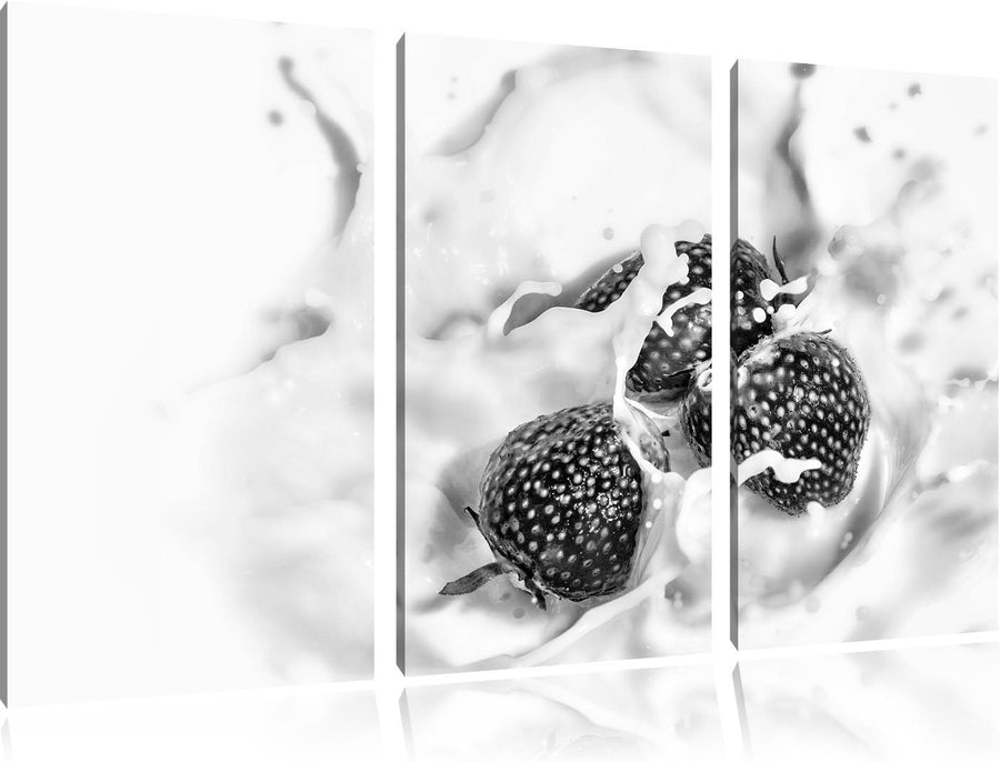 Pixxprint Erdbeermilch als Leinwandbild/Grösse: 3 Teilig (120x80) cm/Wandbild/Kunstdruck/fertig besp