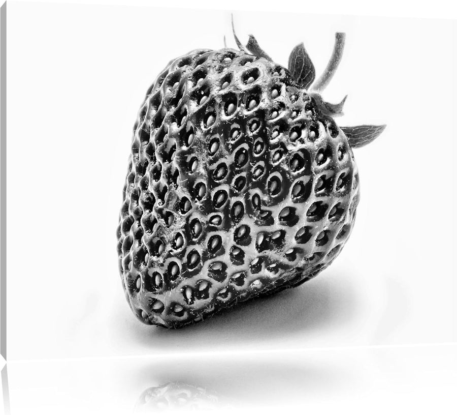 Pixxprint Erdbeere mit Zucker schwarz/weiss, Format: 70x70 auf Leinwand, 70x70