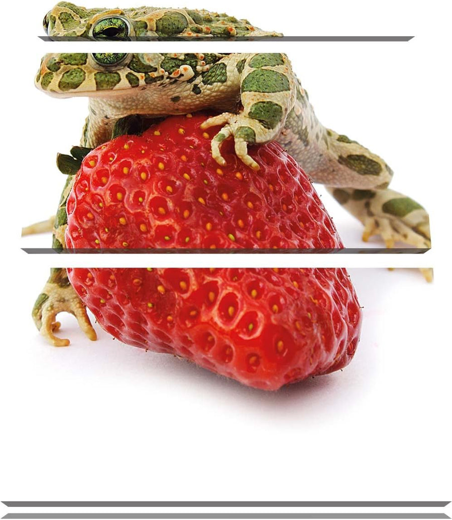 Pixxprint Erdbeere mit Frosch als Leinwandbild/Grösse: 3 Teilig (120x80) cm/Wandbild/Kunstdruck/fert
