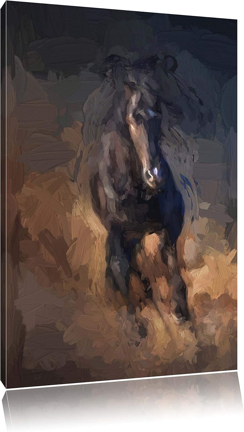 Pixxprint Elegantes schwarzes Pferd als Leinwandbild/Grösse: 100x70 / Wandbild/Kunstdruck/fertig bes