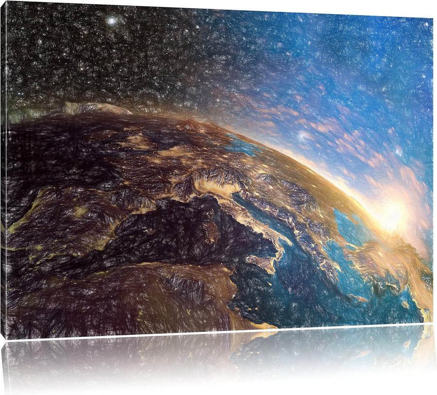 Pixxprint Erde im Weltall als Leinwandbild/Grösse: 100x70 / Wandbild/Kunstdruck/fertig bespannt, 100