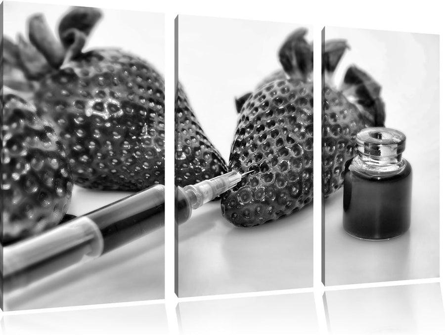 Pixxprint Erdbeeren mit Lebensmittelfarbe als Leinwandbild/Grösse: 3 Teilig (120x80) cm/Wandbild/Kun